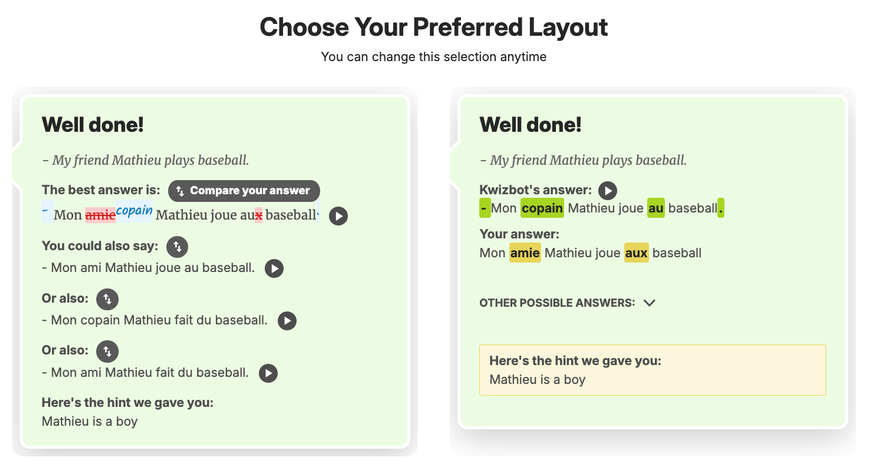 We’re always looking for ways to make learning with Kwiziq clearer, more motivating, and more enjoyable – especially when it comes to corrections. After all, that’s where the real learning happens.