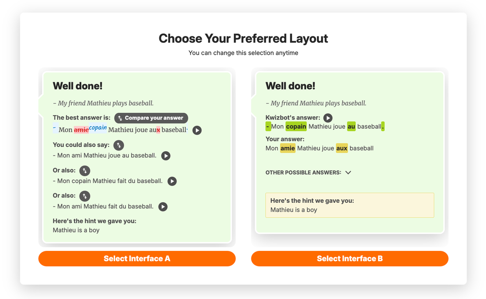 We’re always looking for ways to make learning with Kwiziq clearer, more motivating, and more enjoyable – especially when it comes to corrections. After all, that’s where the real learning happens.